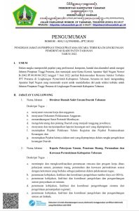Pengumuman Penilaian Akhir Tahapan Seleksi Calon Anggota Direksi dan Calon Anggota Dewan Pengawas Perusahaan Umun Daerah Air Minum Tirta Amertha Buana Kabupaten Tabanan