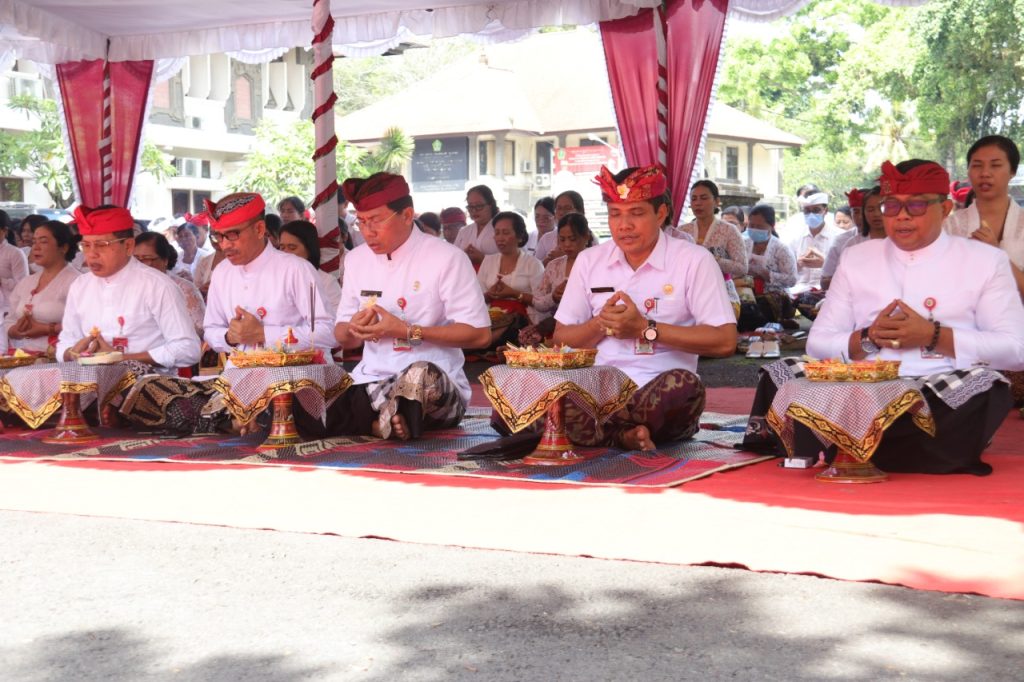 Kegiatan Persembahyangan bersama yang berlangsung dengan khidmat ini dipimpin oleh Sekda I Gede Susila dan diikuti oleh para Asisten, serta para OPD terkait di lingkungan Pemerintah Kabupaten Tabanan. @prokopimtabanan,-